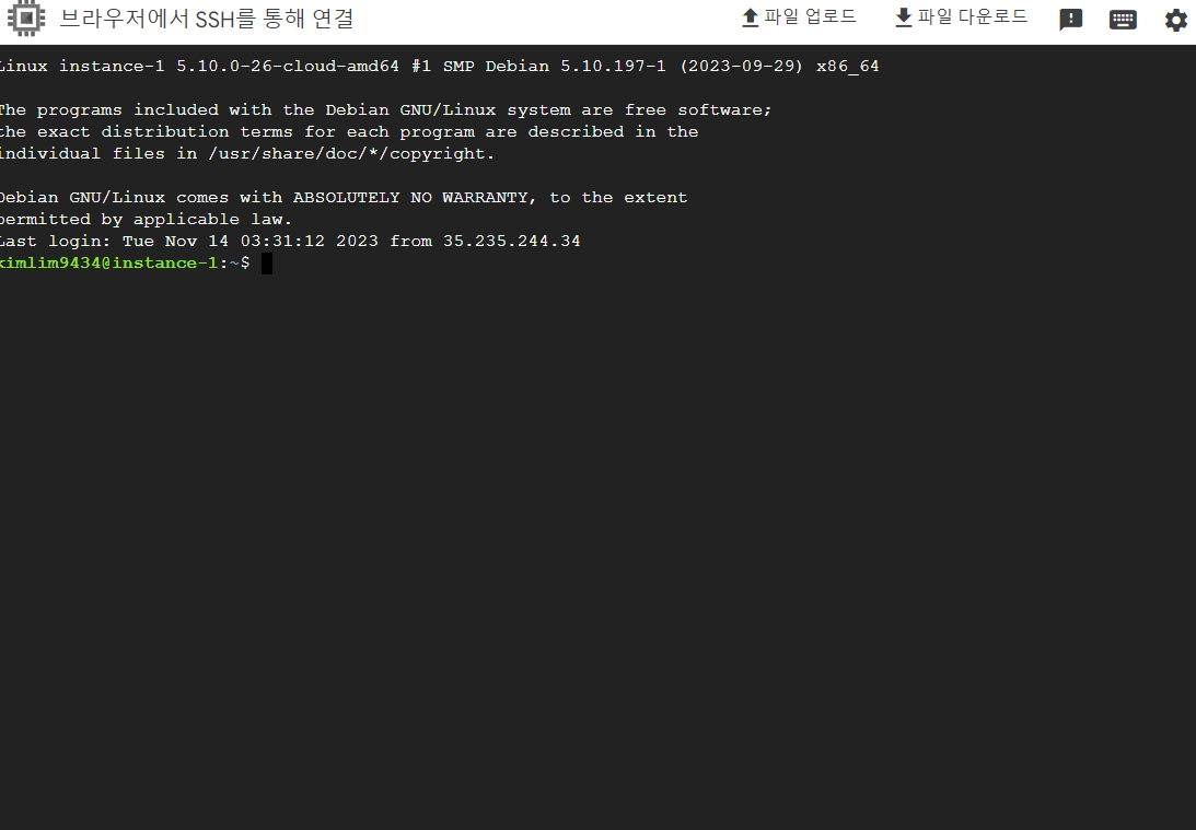 인스턴스 옆에 SSH를 누르면 컴퓨터가 작동된다.