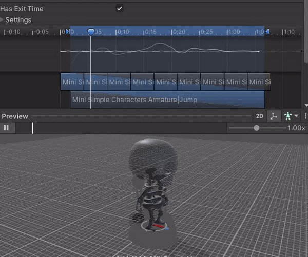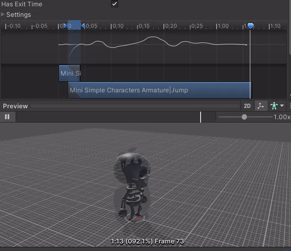 => 원인은 세팅아래의 파란색 영역이 너무 길기 때문에 idle에서 점프로 전환되는 시간이 너무 길어져서 애니메이션이 이상하게 작동되는 것. 해결법은