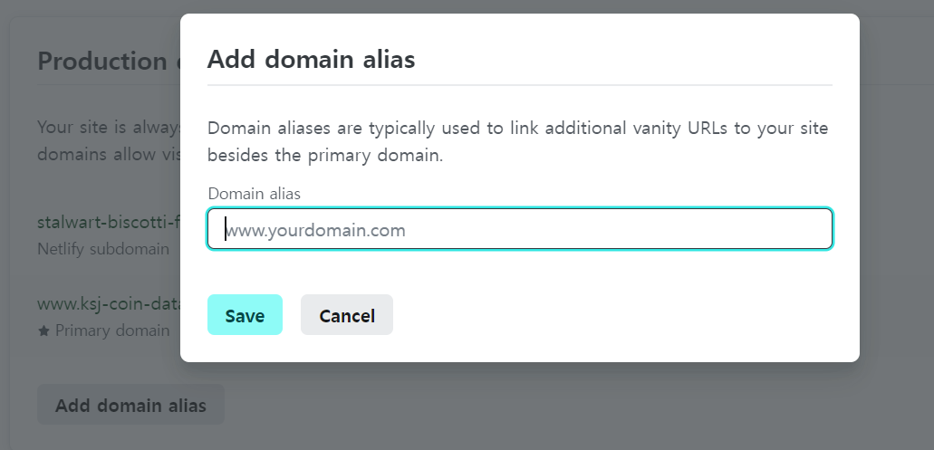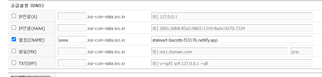 별칭 부분에 netlify에서 생성된 url을 입력해주면된다.