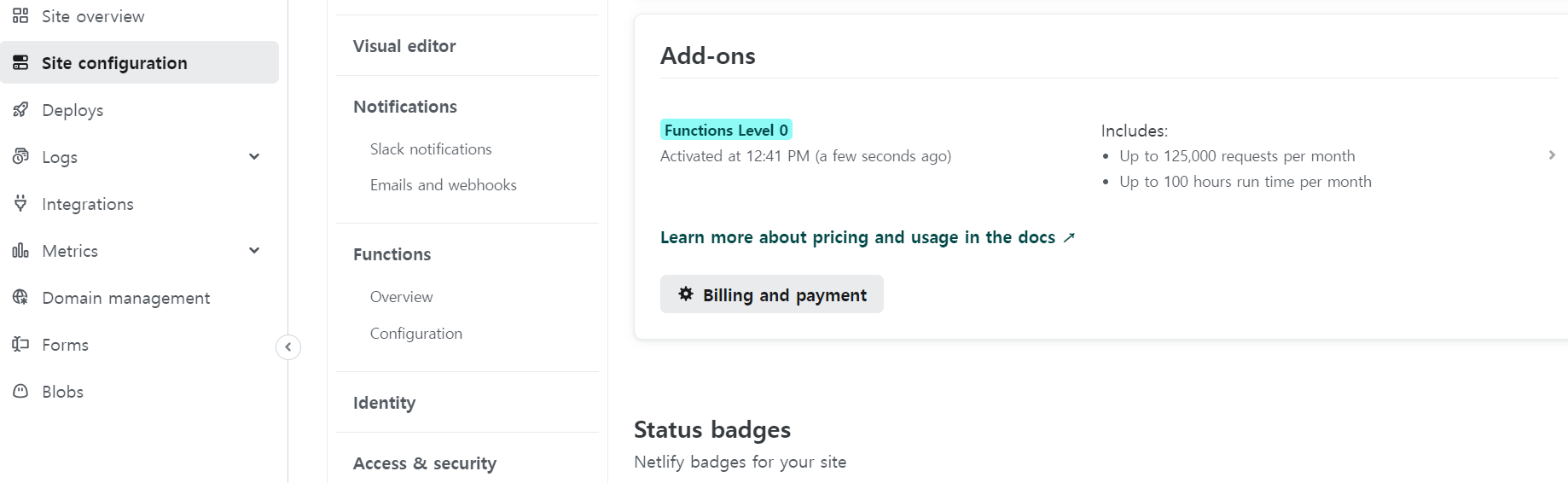 파일들이 정상적으로 빌드되었다면 아래 사진처럼 functions 0가 표시될 것이다.