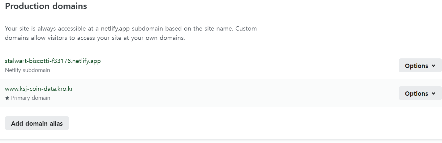 연결한 도메인 옆에 awaiting dns 문구가 있을 것이다. netlify에서 인증서를 발급 중인 것이므로 한 두시간 있다가 다시 확인해본다.