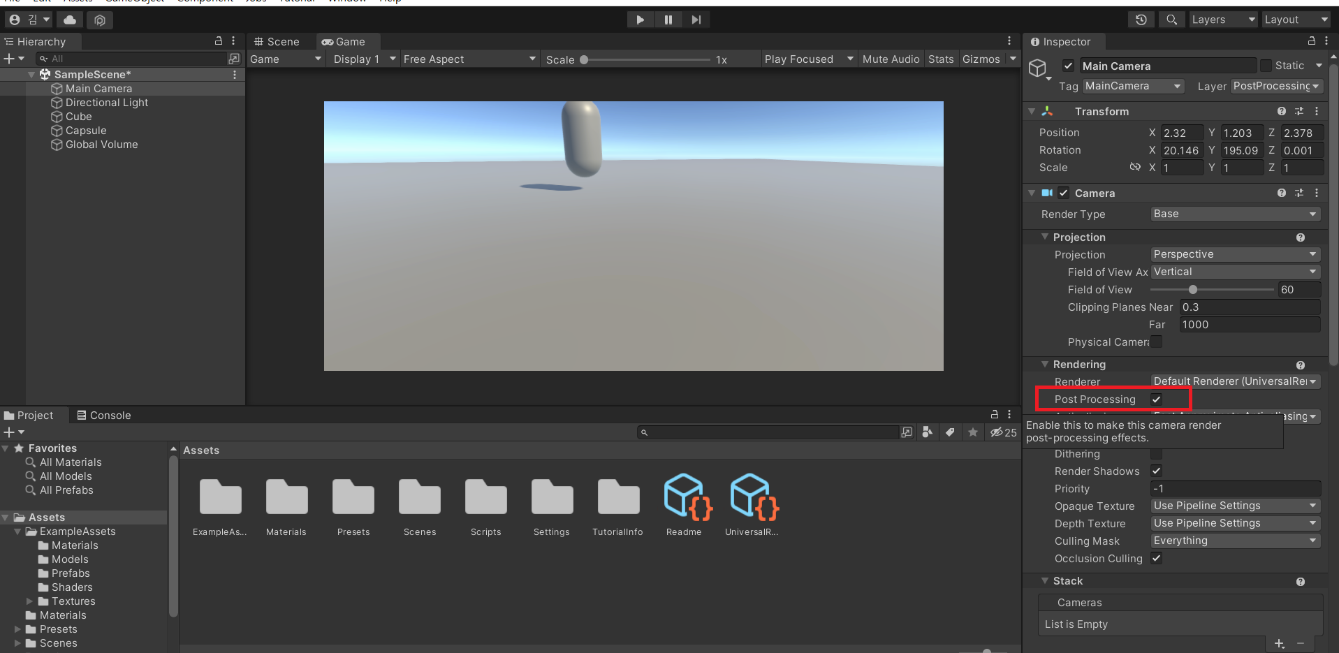 Post Processing에 체크가 안되어 있다면 체크해준다.